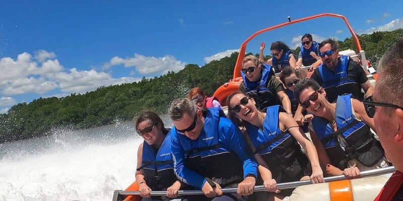 It’s crazy how much fun you can pack into 35 minutes. This Cairns jet boat adventure begins and ends at Marlin Marina. In between you’ll head into the mangrove estuaries of Trinity Inlet, look for crocodiles and then take a quick spin into the shipping channel and rocket past the Cairns Esplanade and Lagoon. The scenery is amazing, the commentary informative and get ready for the spins – they are awesome!