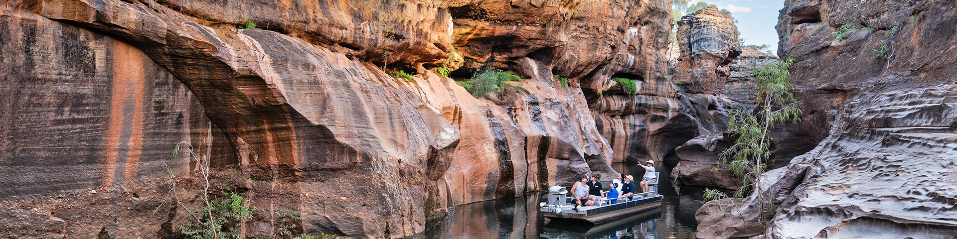 The 3 hour Gorge Tour provides a comprehensive introduction to Cobbold Gorge. It includes a Savannah Guide walk and interpretive commentary, through the sandstone, up over the escarpment and Glass Bridge, as well as boat ride through the Gorge.