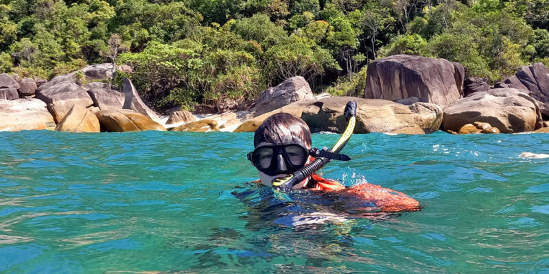 Yes, Fitzroy Island is suitable for beginner snorkelling. We took a 12 year old who had never snorkeled before and he absolutely loved it. Being able to snorkel off the beach provides you with the ability to manage your own depth and snorkel time, which is reassuring when you are trying something for the first time. He was lucky enough to see a turtle on his very first snorkel – doesn’t get any better than that!