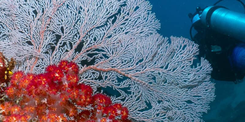 The Three Sisters dive site on Milln Reef, has some amazing swim-throughs festooned with gorgonian sea fans and feather stars.