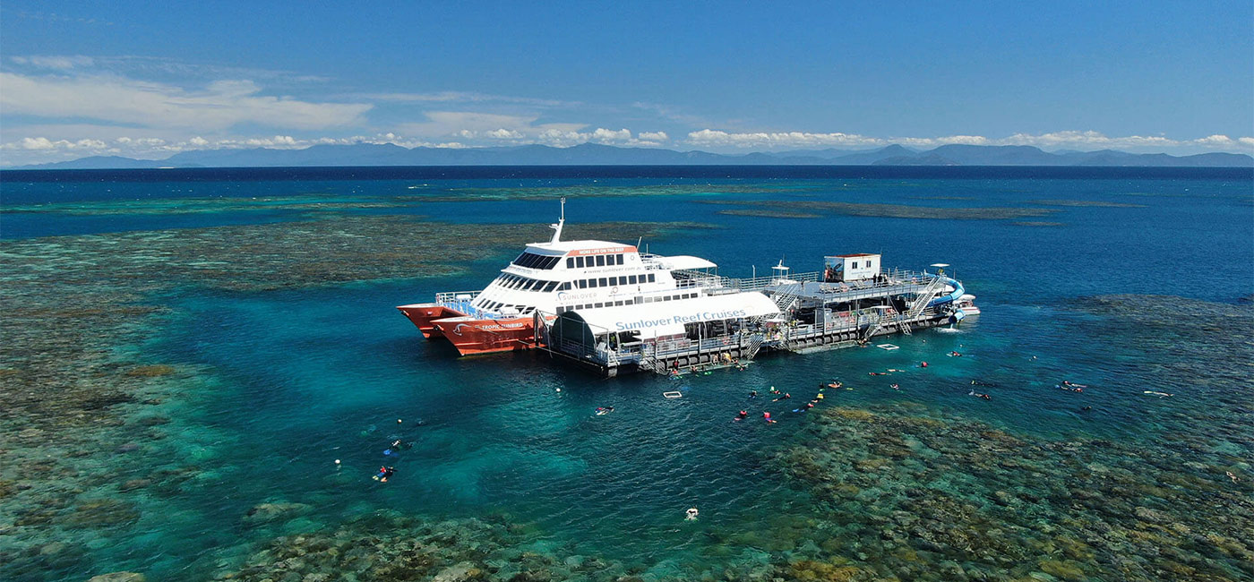 When your crew is a combination of scuba divers and snorkelers, and you want the best Great Barrier Reef experience possible, then an outer reef pontoon is the answer for you. Sunlover’s Moore Reef tour packs a good value punch, with pontoon, diving, snorkelling, glass bottom boat, semi-submersible, underwater observatory, touch tank, scenic heli rides, waterslide and more. Great reef location. Lots of inclusions. Just a short boat ride from Cairns. Tick, tick, tick – let’s go with our Sunlover Reef Cruises review.