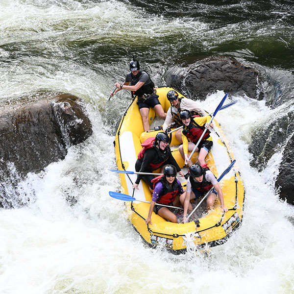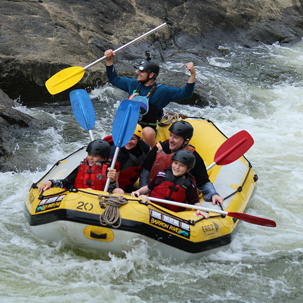 Guided white water rafting on the Barron River with grade 3 rapids, calm floats and rainforest scenery. Half-day tour with transfers available. Suitable from 12 years.