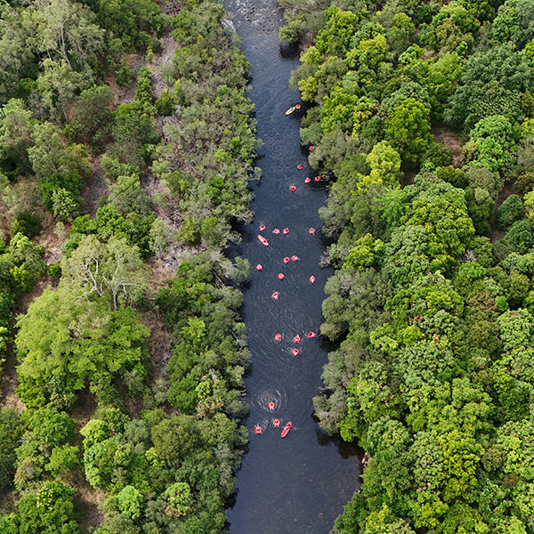 Half-day Cairns river tubing with CAG. Choose the best river on the day, bounce rapids, float rivers, with guides, gear and transfers.