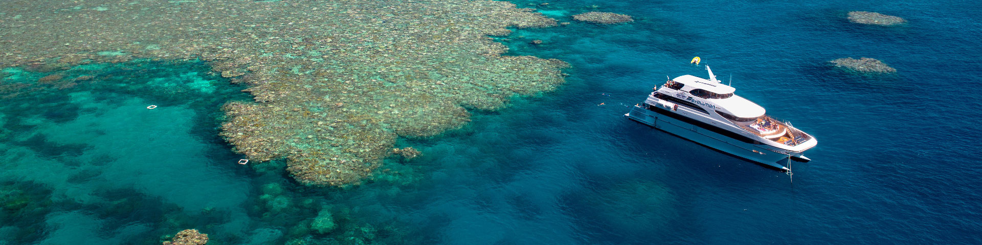 Evolution departs Cairns and commences its journey to the Great Barrier Reef. All safety, dive and snorkel equipment briefings are conducted on the boat, on the way to the reef.
